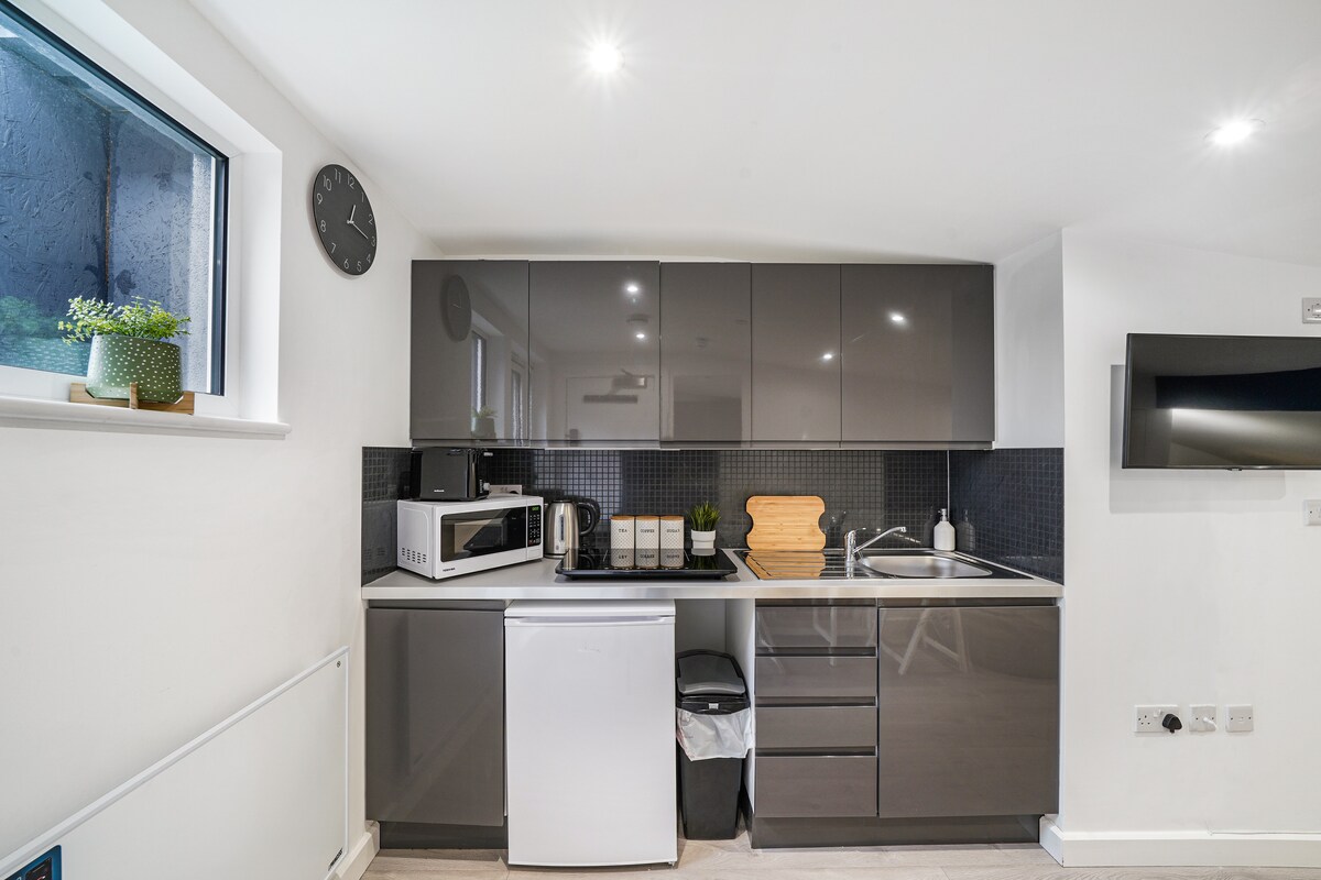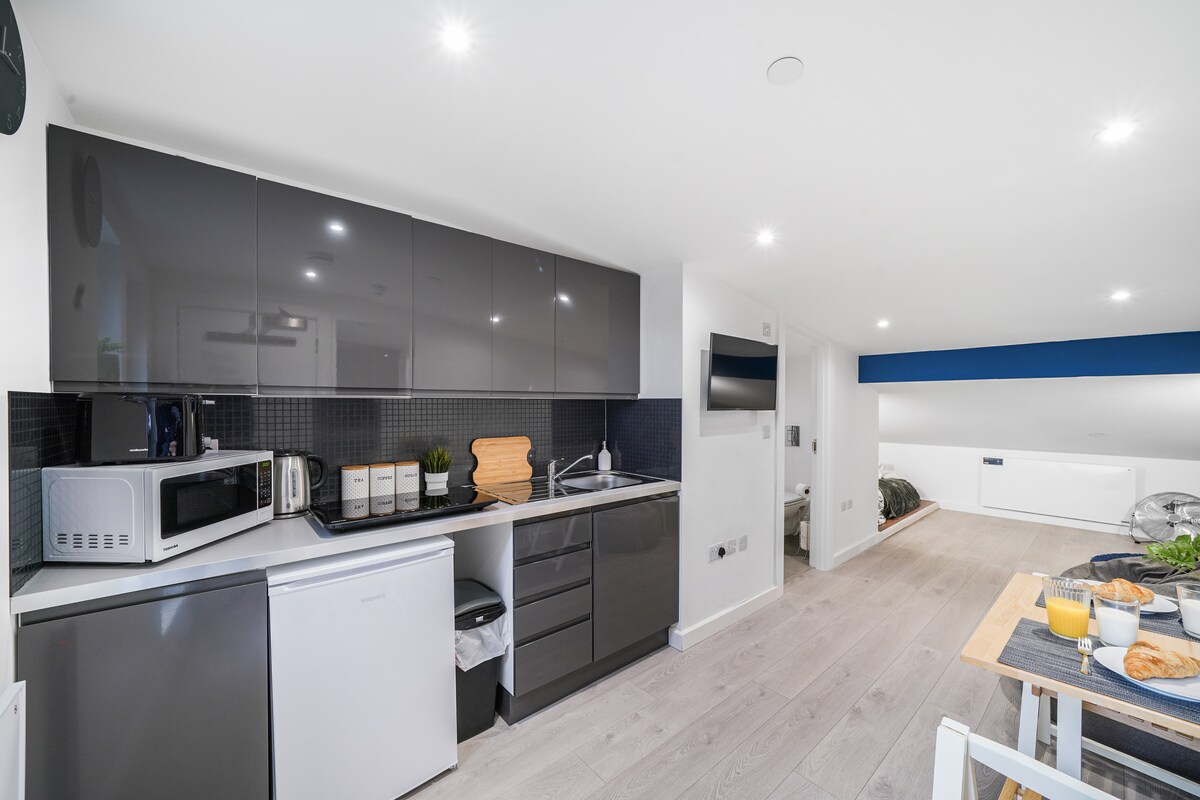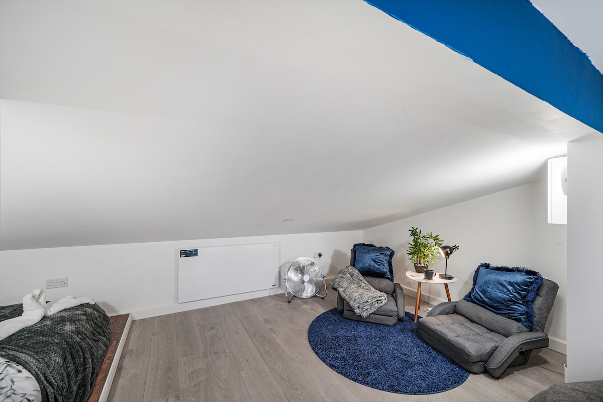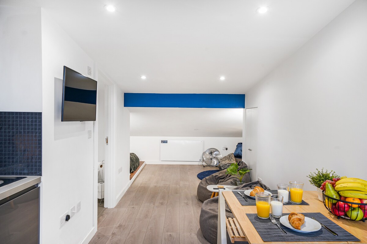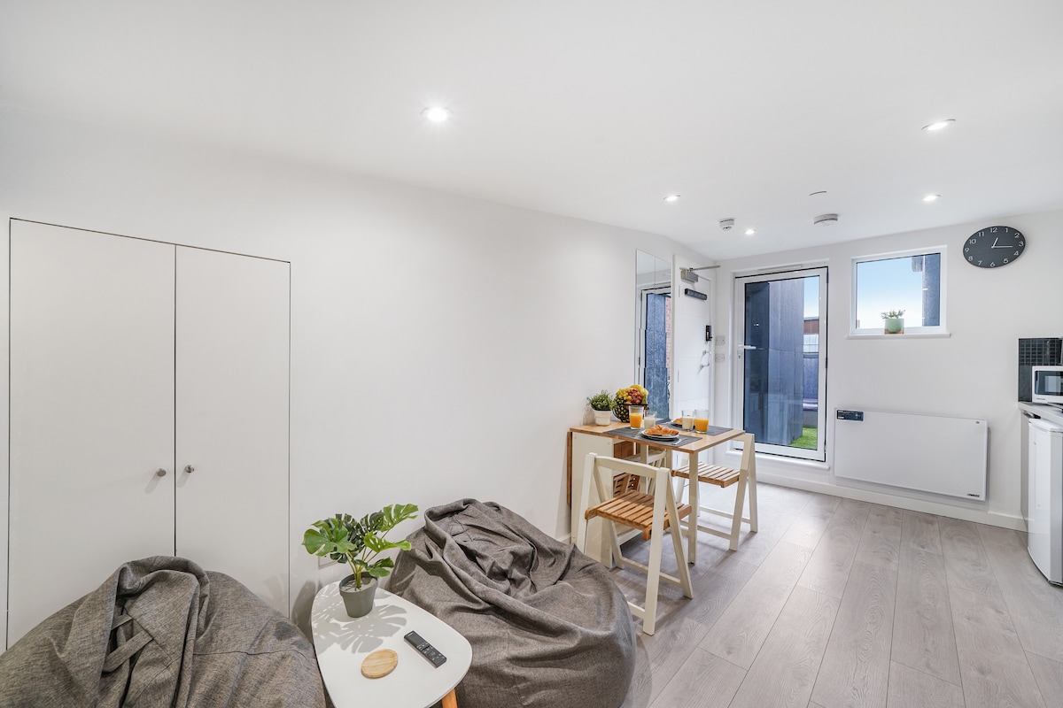 Greater LondonExplore central London from our fully furnished studio. Unwind on the spacious terrace after city adventures. Perfect for explorers, with attractions, restaurants, and 2 tube stations just 2 minutes away. Enjoy a private rooftop terrace, hot tub, and a cinematic experience with TV and projector. Please note: Going up 3 sets of stairs is the only challenge to reach this urban oasis. Also, the cozy sleeping area has a low ceiling. Book now for a unique London stay!
